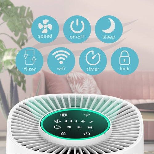 with wifi connectivity and a free app you can effortlessly control the device, utilise automations, and monitor air quality in from wherever you are in the world